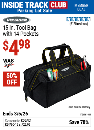 VOYAGER 15 IN. TOOL BAG WITH 14 POCKETS Lot No. 61469 Expired: 1/15/26 - $6.99 Coupon Code: 'n/a'