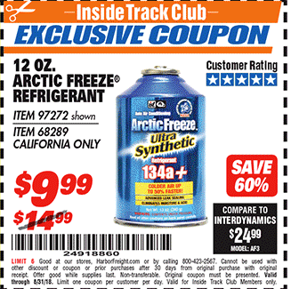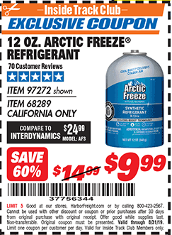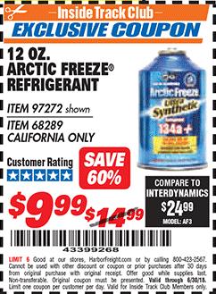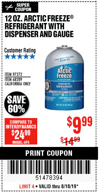 12 OZ. ARTIC FREEZE REFRIGERANT Lot No. 97272/68289 Expired: 8/18/19 - $9.99 Coupon Code: '51478394'
