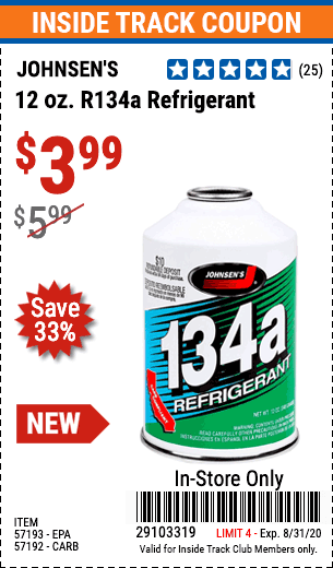 ITC 12 OZ. R134A REFRIGERANT Lot No. 57193/57192 Expired: 8/31/20 - $3.99 Coupon Code: '29103319'