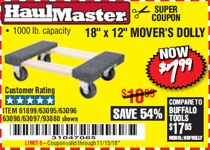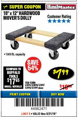 18" X 12" HARDWOOD MOVER'S DOLLY Lot No. 93888/60497/61899/62399/63095/63096/63097/63098 Expired: 6/19/17 - $7.99 Coupon Code: '79527420'