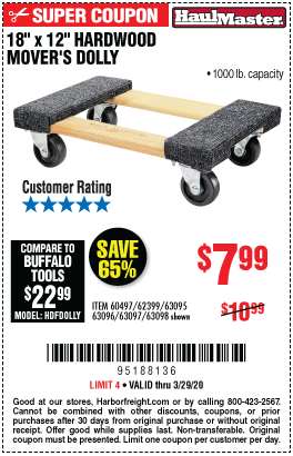 18" X 12" HARDWOOD MOVER'S DOLLY Lot No. 93888/60497/61899/62399/63095/63096/63097/63098 Expired: 3/20/21 - $7.99 Coupon Code: '24799284'