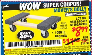 18" X 12" HARDWOOD MOVER'S DOLLY Lot No. 93888/60497/61899/62399/63095/63096/63097/63098 Expired: 3/1/15 - $7.99 Coupon Code: '43004445'