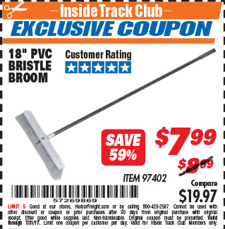 ITC 18 IN. PVC BRISTLE BROOM Lot No. 97402 Expired: 7/31/17 - $7.99 Coupon Code: '57269869'