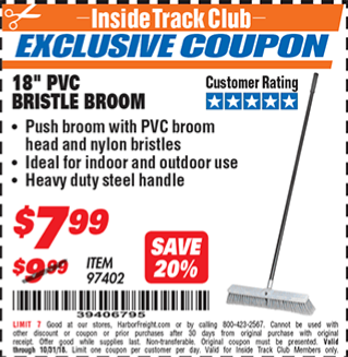 ITC 18 IN. PVC BRISTLE BROOM Lot No. 97402 Expired: 10/31/18 - $7.99 Coupon Code: '39406795'