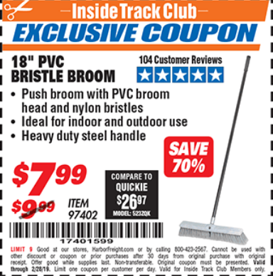 ITC 18 IN. PVC BRISTLE BROOM Lot No. 97402 Expired: 2/28/19 - $7.99 Coupon Code: '17401599'