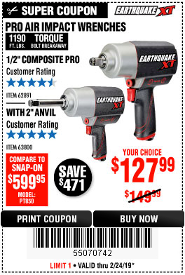 1/2" COMPOSITE PRO EXTREME AIR IMPACT WITH 2" ANVIL Lot No. 63800 Expired: 2/24/19 - $127.99 Coupon Code: '55070742'