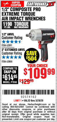 1/2" COMPOSITE PRO EXTREME TORQUE IMPACT WRENCHES Lot No. 62891/63800 Expired: 3/29/20 - $109.99 Coupon Code: '92574162'