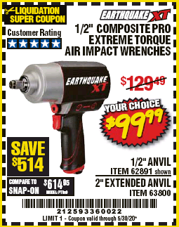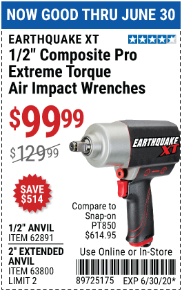 1/2" COMPOSITE PRO EXTREME TORQUE IMPACT WRENCHES Lot No. 62891/63800 Expired: 6/30/20 - $99.99 Coupon Code: '99512823'