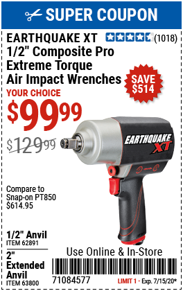 1/2" COMPOSITE PRO EXTREME TORQUE IMPACT WRENCHES Lot No. 62891/63800 Expired: 7/15/20 - $99.99 Coupon Code: '71084577'