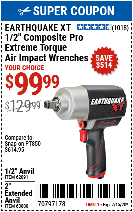 1/2" COMPOSITE PRO EXTREME TORQUE IMPACT WRENCHES Lot No. 62891/63800 Expired: 7/15/20 - $99.99 Coupon Code: '70797178'