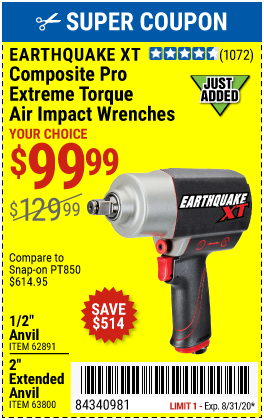 1/2" COMPOSITE PRO EXTREME TORQUE IMPACT WRENCHES Lot No. 62891/63800 Expired: 8/31/20 - $99.99 Coupon Code: '84340981'