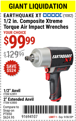 1/2" COMPOSITE PRO EXTREME TORQUE IMPACT WRENCHES Lot No. 62891/63800 Expired: 9/30/20 - $99.99 Coupon Code: '91694107'
