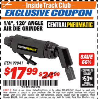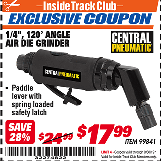ITC 1/4", 120 ANGLE AIR DIE GRINDER Lot No. 99841 Expired: 9/30/19 - $17.99 Coupon Code: '32274822'