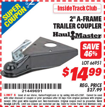 ITC 2" A-FRAME TRAILER COUPLER Lot No. 66951 Expired: 5/31/15 - $14.99 Coupon Code: '21449691'