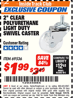 ITC 2" CLEAR POLYURETHANE LIGHT DUTY SWIVEL CASTER Lot No. 69536 Expired: 7/31/18 - $1.99 Coupon Code: '12935985'