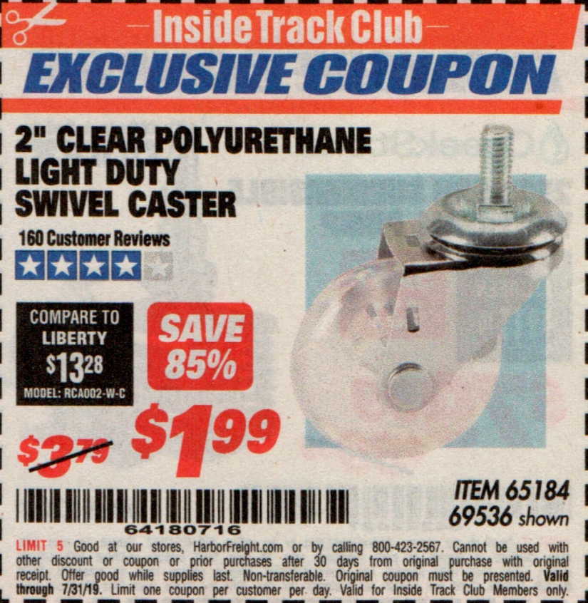 ITC 2" CLEAR POLYURETHANE LIGHT DUTY SWIVEL CASTER Lot No. 69536 Expired: 7/31/19 - $1.99 Coupon Code: '64180716'