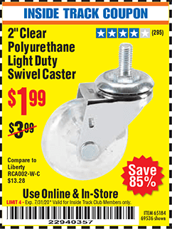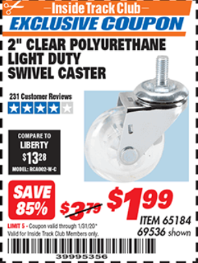 ITC 2" CLEAR POLYURETHANE LIGHT DUTY SWIVEL CASTER Lot No. 69536 Expired: 1/31/20 - $1.99 Coupon Code: '39995356'