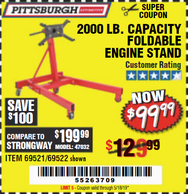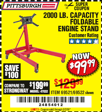2000 LB. FOLDABLE ENGINE STAND Lot No. 69522/67015/69521 Expired: 3/2/19 - $99.99 Coupon Code: '24854012'