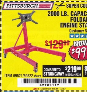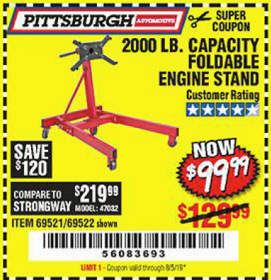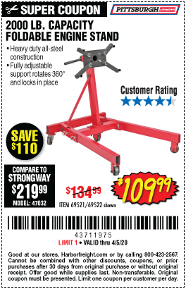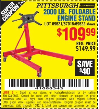 2000 LB. FOLDABLE ENGINE STAND Lot No. 69522/67015/69521 Expired: 8/17/15 - $109.99 Coupon Code: '20088894'