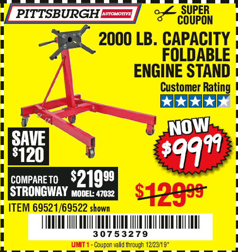 2000 LB. FOLDABLE ENGINE STAND Lot No. 69522/67015/69521 Expired: 12/14/19 - $99.99 Coupon Code: '30753279'