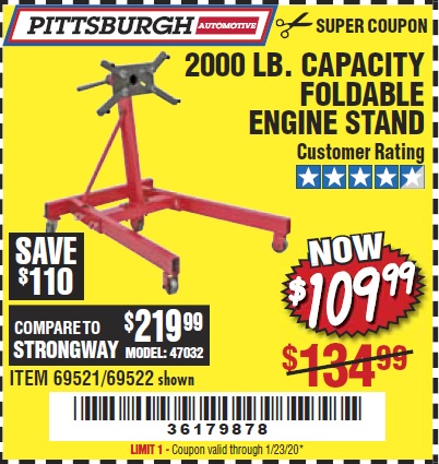 2000 LB. FOLDABLE ENGINE STAND Lot No. 69522/67015/69521 Expired: 1/23/20 - $109.99 Coupon Code: '36179878'