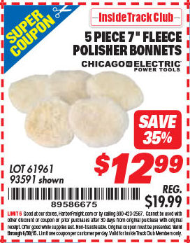 ITC 5 PIECE 7" FLEECE POLISHER BONNETS Lot No. 61961/93591 Expired: 6/30/15 - $12.99 Coupon Code: '89586675'