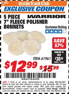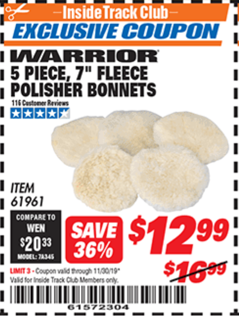 ITC 5 PIECE 7" FLEECE POLISHER BONNETS Lot No. 61961/93591 Expired: 11/30/19 - $12.99 Coupon Code: '61572304'