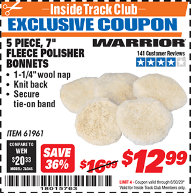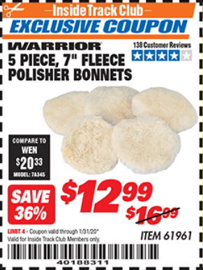ITC 5 PIECE 7" FLEECE POLISHER BONNETS Lot No. 61961/93591 Expired: 1/31/20 - $12.99 Coupon Code: '40188311'