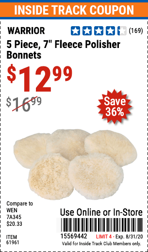 ITC 5 PIECE 7" FLEECE POLISHER BONNETS Lot No. 61961/93591 Expired: 8/31/20 - $12.99 Coupon Code: '15569442'