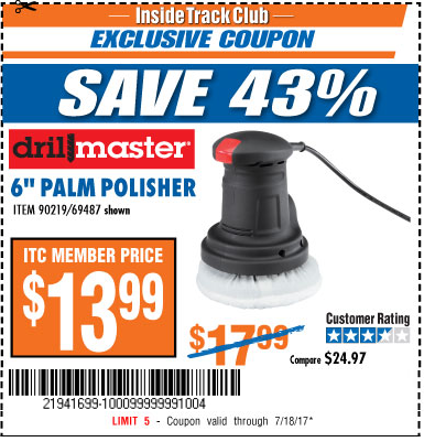 ITC 6" COMPACT PALM POLISHER Lot No. 69487/90219 Expired: 7/18/17 - $13.99 Coupon Code: '21941699'