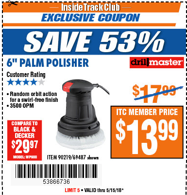 ITC 6" COMPACT PALM POLISHER Lot No. 69487/90219 Expired: 5/15/18 - $13.99 Coupon Code: '53866736'