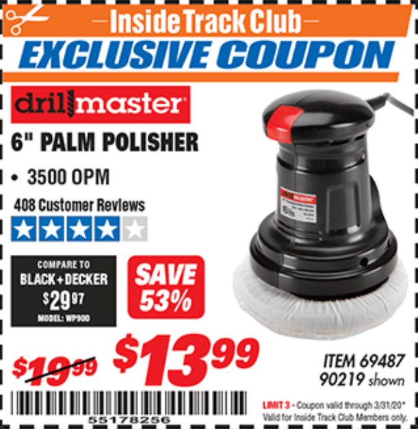 ITC 6" COMPACT PALM POLISHER Lot No. 69487/90219 Expired: 3/31/20 - $13.99 Coupon Code: '55178256'