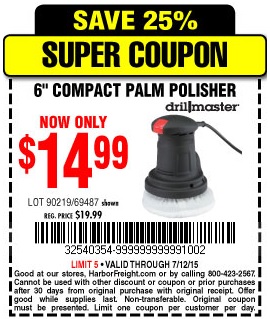 6" COMPACT PALM POLISHER Lot No. 69487/90219 Expired: 7/12/15 - $14.99 Coupon Code: '32540354'