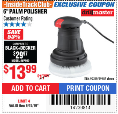 ITC 6" COMPACT PALM POLISHER Lot No. 69487/90219 Expired: 6/25/19 - $13.99 Coupon Code: '14239814'