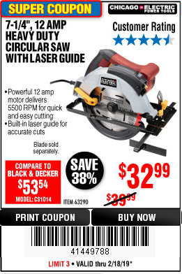 7-1/4" WORM DRIVE PROFESSIONAL INDUSTRIAL FRAMING SAW Lot No. 68988 Expired: 2/18/19 - $32.99 Coupon Code: '41449788'