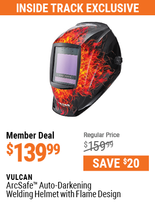 ARCSAFE AUTO-DARKENING WELDING HELMET WITH FLAME DESIGN Lot No. 56861 Expired: 7/1/21 - $139.99 Coupon Code: '15057145'