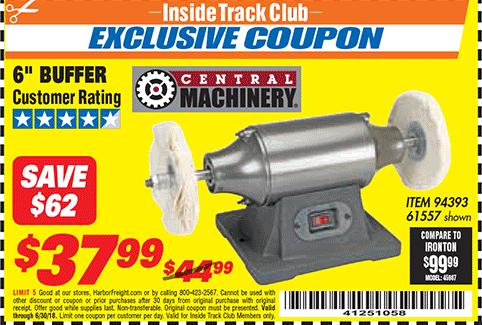 ITC CENTRAL MACHINERY 6 IN. BUFFER Lot No. 61557/94393 Expired: 4/28/15 - $39.99 Coupon Code: '80503159'