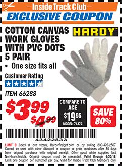 ITC COTTON CANVAS WORK GLOVES WITH PVC FDOTS 5 PAIR Lot No. 66288 Expired: 6/30/18 - $3.99 Coupon Code: '43422833'
