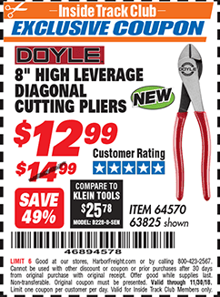ITC DOYLE 8 IN. HIGH-LEVERAGE DIAGONAL CUTTING PLIERS Lot No. 64570 Expired: 11/30/18 - $12.99 Coupon Code: '46894578'
