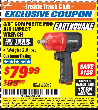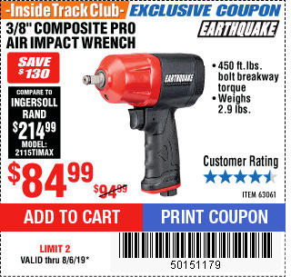 ITC EARTHQUAKE 3/8 IN. COMPOSITE AIR IMPACT WRENCH Lot No. 63061 Expired: 5/31/18 - $79.99 Coupon Code: '15529379'