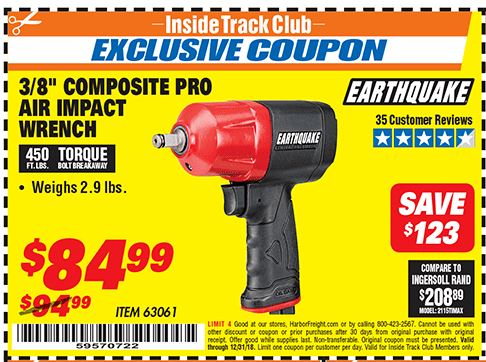 ITC EARTHQUAKE 3/8 IN. COMPOSITE AIR IMPACT WRENCH Lot No. 63061 Expired: 9/30/21 - $64.99 Coupon Code: 'n/a'