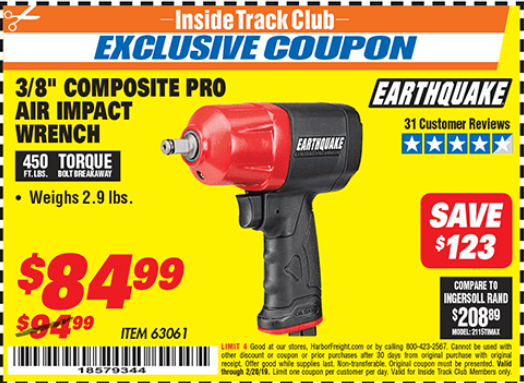 ITC EARTHQUAKE 3/8 IN. COMPOSITE AIR IMPACT WRENCH Lot No. 63061 Expired: 2/28/19 - $84.99 Coupon Code: '18579344'