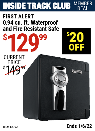 FIRST ALERT 0.94 CU. FT. WATERPROOF AND FIRE RESISTANT SAFE Lot No. 57772 Expired: 7/1/21 - $124.99 Coupon Code: '15369253'
