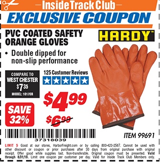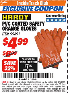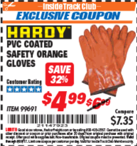 ITC HARDY PVC COATED SAFETY ORANGE GLOVES Lot No. 99691 Expired: 9/30/17 - $4.99 Coupon Code: '21147923'