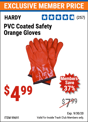 ITC HARDY PVC COATED SAFETY ORANGE GLOVES Lot No. 99691 Expired: 9/30/20 - $4.99 Coupon Code: 'n/a'