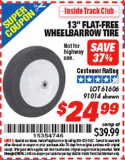 ITC HAUL-MASTER 13 IN. FLAT-FREE TIRE WITH STEEL HUB Lot No. 61606 Expired: 10/31/24 - $29.99 Coupon Code: 'n/a'