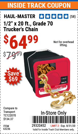 ITC HAUL-MASTER 1/2 IN. X 20 FT. GRADE 70 TRUCKERS CHAIN Lot No. 63236 Expired: 8/31/20 - $64.99 Coupon Code: '29320452'
