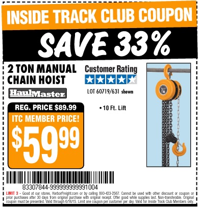 ITC HAUL-MASTER 2 TON MANUAL CHAIN HOIST Lot No. 631 Expired: 6/16/15 - $59.99 Coupon Code: '83307844'