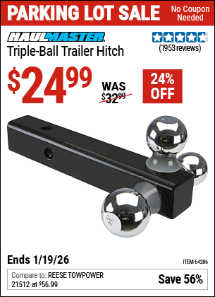 HAUL-MASTER TRIPLE-BALL TRAILER HITCH Lot No. 64286 Expired: 12/31/69 - $24.99 Coupon Code: 'n/a'