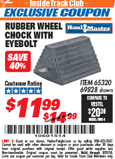 ITC HAUL-MASTER WHEEL CHOCK WITH EYEBOLT Lot No. 69828 Expired: 3/25/21 - $9.99 Coupon Code: 'n/a'